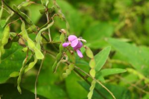 小学生の頃に、トゲトゲのオオオナモミというひっつきむしを集めて投げて遊んでいた記憶がありますが、今よく見かけるのは、アレチヌスビトハギというひっつきむしです。なんだか物騒な名前ですね・・・。