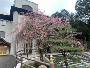 先日開花いたしました枝垂れ梅が、最早三分咲きくらいでしょうか?