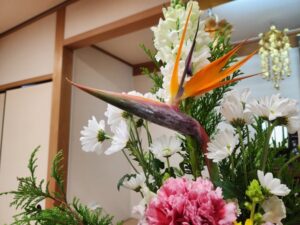 浄土真宗本願寺派の本山、西本願寺の本堂に供えられる仏花にもたびたび使用されております。ちなみにこのストレリチア、極彩色の鳥のような見た目から別名「極楽鳥花」とも呼ばれます。